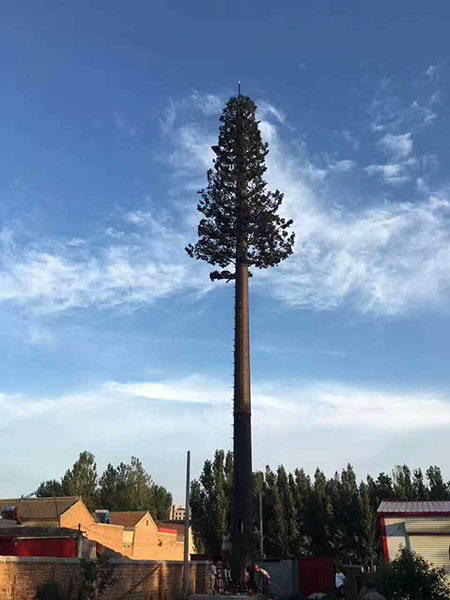 仿生樹 ,又叫仿生塔、仿生通訊塔,屬于通信發(fā)射塔技術領域。是讓通信鐵塔與周圍的自然環(huán)境相協(xié)調,有效地解決了風景區(qū)等地建站難的問題,其優(yōu)點是保持了原有單管塔的所有優(yōu)點,在其外形上作了重大的突破、改進,以自然生長的松樹,樟樹等為仿真的造型樣本,設計素描圖和電腦效果圖,制訂雕塑和噴涂工藝程序,對單管塔仿真?zhèn)窝b,使人們察覺不到塔的存在,把它融入了周圍的自然環(huán)境中。