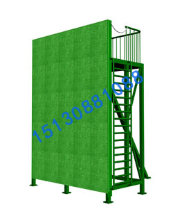 六、訓(xùn)練塔宜設(shè)置室外消防梯。消防梯應(yīng)通至塔頂,并宜離地面 3 米高處設(shè)起,寬度不宜小于50厘米。)消防訓(xùn)練塔產(chǎn)品說明:多功能消防訓(xùn)練塔,主要由(1)模擬窗、(2)樓層隔板、(3)后骨架、(4)了望、指揮平臺骨架及主體鋼結(jié)構(gòu)框架等組成。在塔體前端部位設(shè)有八個模擬窗(根據(jù)需要定做幾層幾窗口),在上、下相鄰的模擬窗之間設(shè)有樓層隔板(鋼板)。2、在塔體后部下方設(shè)有與模擬窗相對應(yīng)的后骨架。3、模擬窗與樓層隔板以及后骨架及主體框架相互之間用螺栓連接為一體,4、層與層之間均有安全樓梯連接。5、塔體上部裝有了望、指揮平臺。6、根據(jù)需要可安裝測風(fēng)儀、涼水帶架和警報器等。7、根據(jù)需要,在消防訓(xùn)練塔旁邊可制作模擬消防訓(xùn)練井。8、消防訓(xùn)練塔設(shè)備同時還配備消防專用滑輪、滑竿、模擬墻等附屬設(shè)施。本訓(xùn)練塔結(jié)構(gòu)科學(xué)、操作安全、使用方便,產(chǎn)品防腐處理熱鍍鋅或熱噴涂處理,50年無需維護(hù),安全可靠。具有消防訓(xùn)練、了望、測風(fēng)、報警等多種功能。同時便于指揮長隨時掌握消防官兵的動作要領(lǐng)。是目前武警消防官兵消防訓(xùn)練實戰(zhàn)演習(xí)之必備設(shè)備。同時替代了過去磚混結(jié)構(gòu)消防樓的歷史。